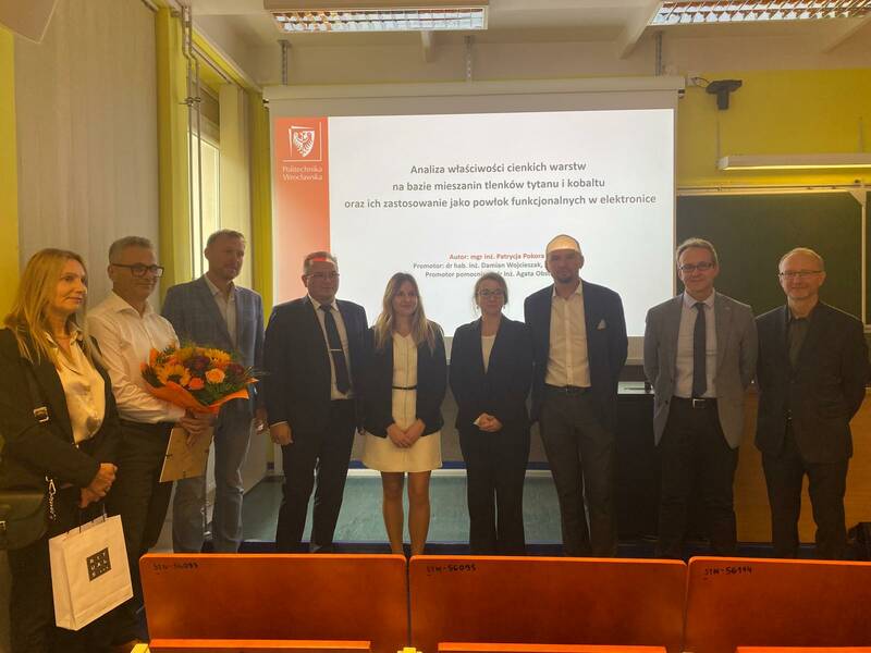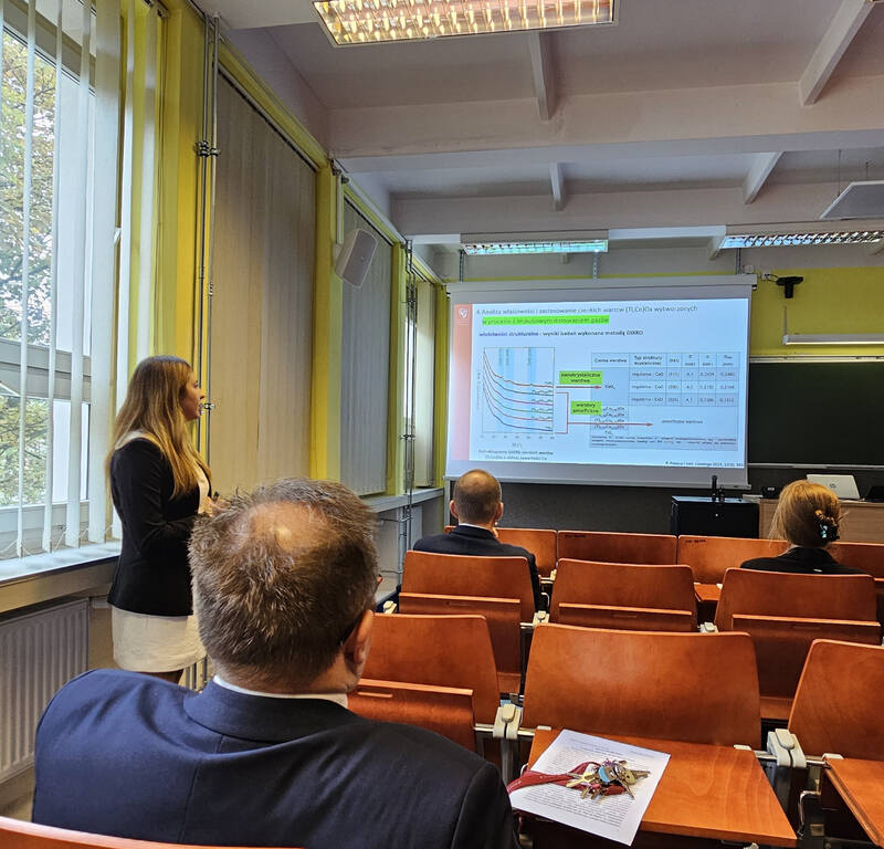 Podczas publicznej dyskusji recenzenci oraz uczestnicy spotkania odnieśli się do kluczowych aspektów metodologicznych, technologicznych i interpretacyjnych przedstawionych wyników, zwracając uwagę na znaczenie uzyskanych rezultatów dla rozwoju materiałów o kontrolowanych właściwościach funkcjonalnych. Doktorantka udzieliła szczegółowych odpowiedzi na pytania, wykazując się bardzo dobrą znajomością tematyki oraz wysokim poziomem kompetencji badawczych.